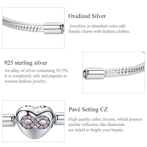 Sterling Silver Heart Infinity Love Bracelet Charm Bangle