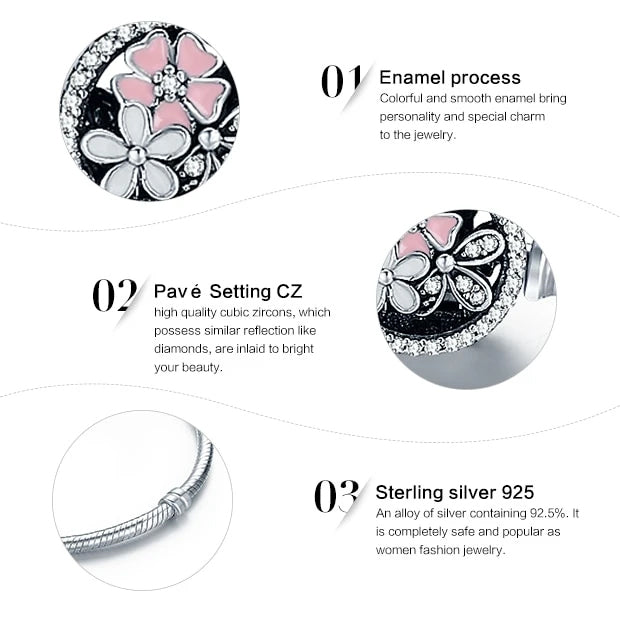 Sterling Silver Poetic Daisy Cherry Blossom Bracelet