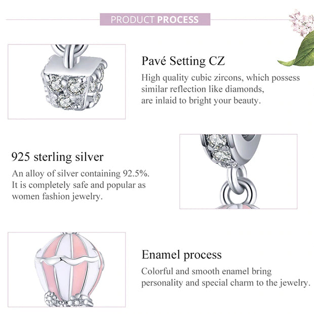 CHARMDANT: Sterling Silver Enamel Romantic Balloon Charm / Pendant