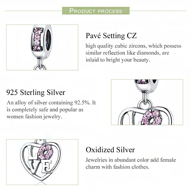 CHARMDANT: Sterling Silver Valentine Love Heart Charm / Pendant