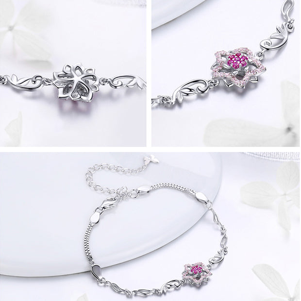 Bracelet: Sterling Silver Blooming Peach Love Flower Bracelet